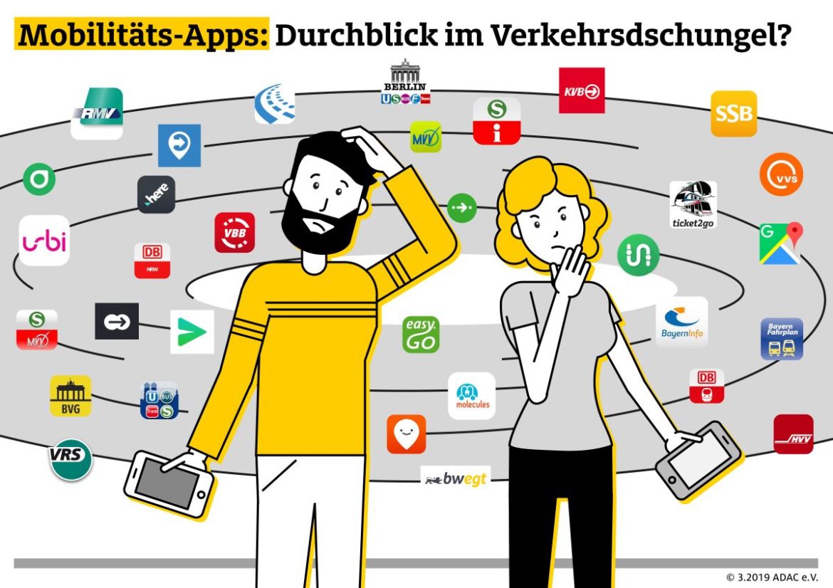 Wer mit verschiedenen Verkehrsmitteln unterwegs ist, muss häufig mehrere Mobilitäts-Apps nutzen, zeigt die ADAC Stichprobe: Eine App, die auf dem Weg von A nach B alle Möglichkeiten intelligent vernetzt, aufzeigt und realisieren lässt, gibt es bis jetzt noch nicht.