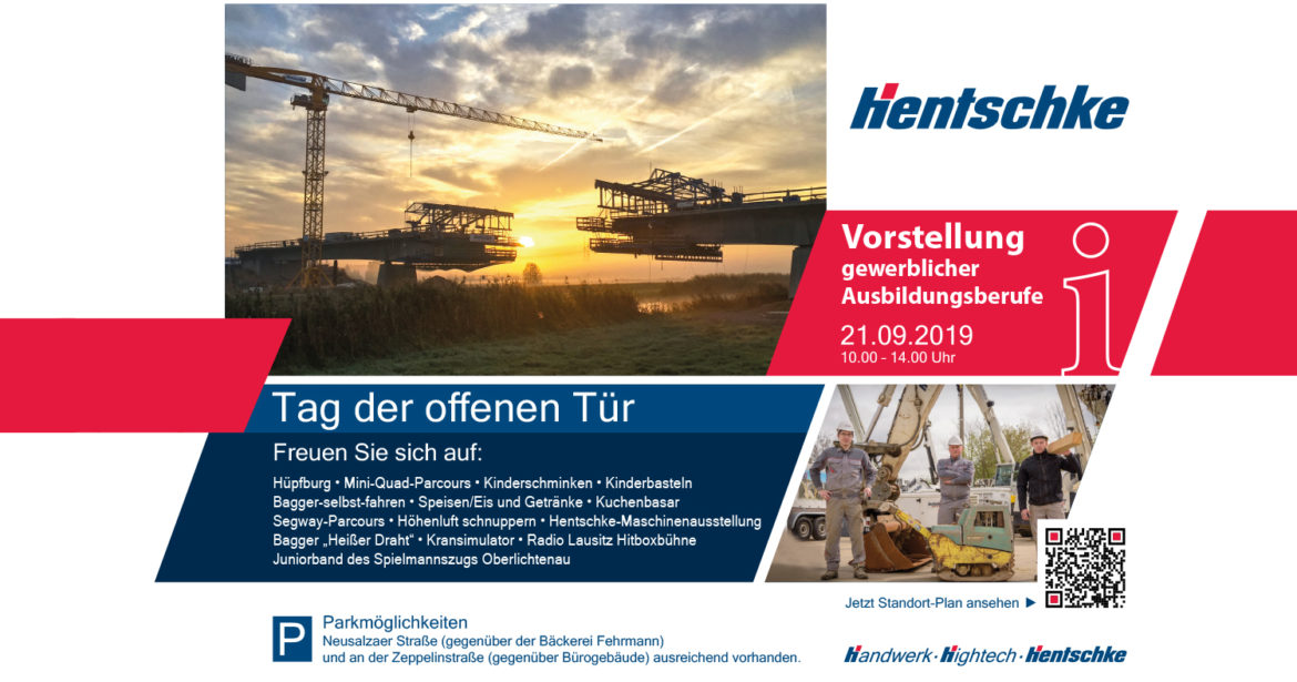 Am Samstag, dem 21. September ist was los bei Hentschke Bau in Bautzen. Das Unternehmen lädt zum Tag der offenen Tür und einem Blick hinter die Kulissen ein. Zwischen 10.00 Uhr und 14.00 Uhr gibt es Attraktionen und Überraschungen für jung und alt sowie jede Menge Wissen rund um die Themen Handwerk, Hightech und gewerbliche Berufe.