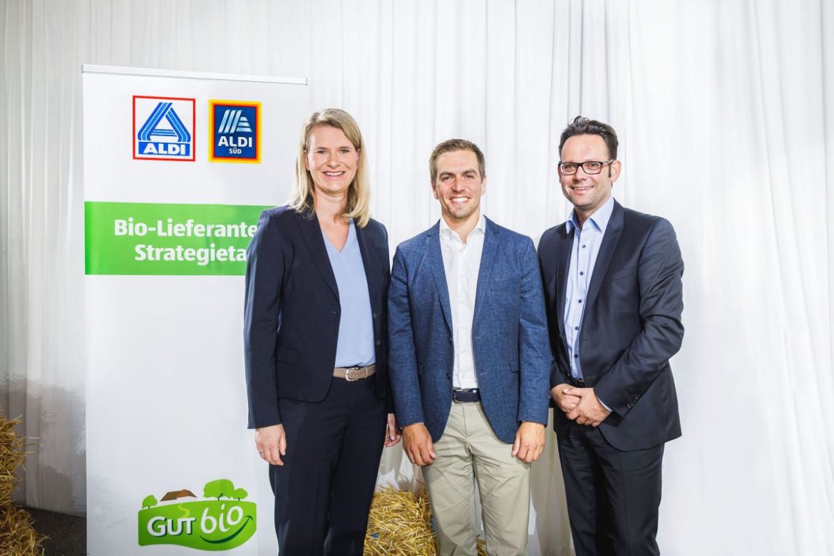 Der Einladung zum ersten Bio-Lieferantenstrategietag von ALDI Nord und ALDI SÜD folgten rund 120 Teilnehmer. In verschiedenen Impulsvorträgen berichteten Lieferanten und Partner unter anderem von Best-Practice-Beispielen und stellten zukunftsweisende Ernährungstrends vor. Ebenfalls vor Ort war Philipp Lahm, der seit 2018 Inhaber des Traditionsunternehmens Schneekoppe ist und 15 Produkte exklusiv über ALDI vertreibt. Im Gespräch erzählte der ehemalige Nationalspieler, wie seine Leidenschaft für das Thema Bio entstanden ist und wie er seine ersten Schritte als Bio-Unternehmer machte: „Mir gefiel die Idee, gute Lebensmittel in Bio-Qualität für ein breites Publikum verfügbar zu machen und Menschen dabei zu unterstützen, ein gesundes Leben zu führen. Mit ALDI haben wir dafür den richtigen Vertriebspartner gefunden und wollen künftig immer besser werden.“