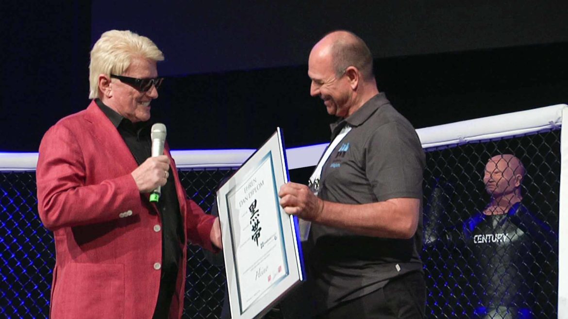 Heino, Schlager-Star und Kultfigur der deutschen Musikszene, wurde im Rahmen der Martial Arts Supershow für sein Lebenswerk geehrt. Er erhielt den Lifetime Achievement Award der Martial Arts Industry Association (MAIA), der Wirtschaftsvereinigung der Kampfsportbranche. Übergeben wurde der Preis von Toni Dietl, der Heino zugleich mit dem Ehren-Dan des Kampfkunstkollegiums ehrte. Der Sänger ist Träger des schwarzen Gürtels in Ju Jutsu und war lange Zeit aktiver Kampfsportler. „Wir haben viel für den Kampfsport erreicht“, so Toni Dietl abschließend mit Blick auf die Martial Arts Supershow. Zu verdanken sei dies auch Stars wie Heino und anderen, die diesen Sport populär machen und aktiv für ihn werben.