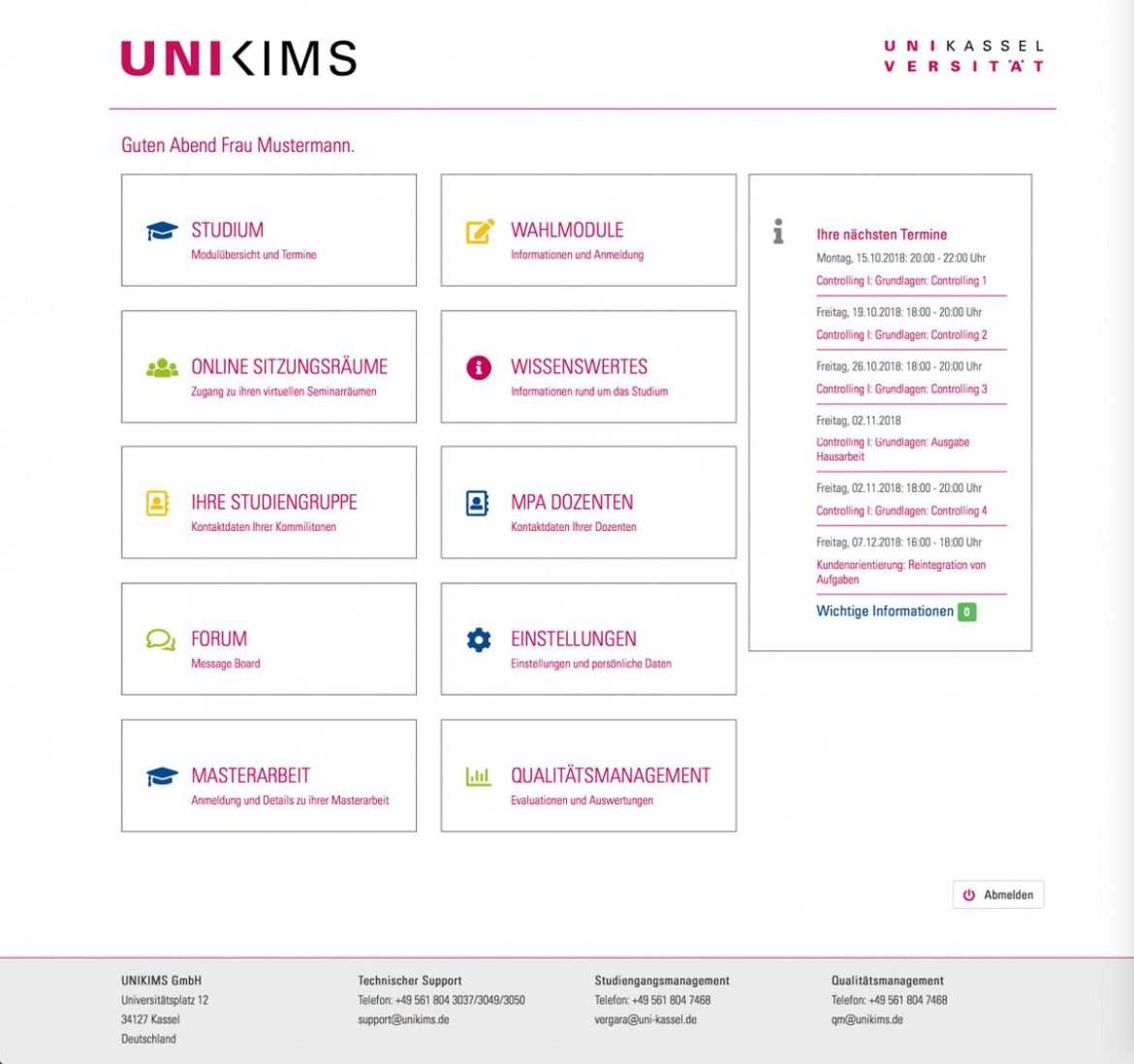 Studenten studieren auf dem Campus. Und wer berufsbegleitend studiert, lernt und trifft sich mit Dozenten und Kommilitonen auf dem eCampus – digital statt analog. Aber was ist das eigentlich: Der eCampus? André Schaub, der bei der UNIKIMS – der Spezialistin der Universität Kassel für die universitäre, berufsbegleitende Weiterbildung (www.unikims.de) – für die digitale Infrastruktur zuständig ist, beschreibt den eCampus als ein „maßgeschneidertes Informationssystem, das die Lehrinhalte, die Kontakte zu Kommilitonen und Dozenten, den Verlauf des Studiums für den einzelnen Studierenden und weitere Daten individuell abbildet“. Schaub spricht von einem „lebenden System“, dessen Grundstein vor 20 Jahren gelegt wurde, und das er seither weiterentwickelt hat: „Wir organisieren den eCampus so, dass die Studierenden im Idealfall nichts von uns spüren. Wir beseitigen möglichst alle technische Barrieren, damit sich unsere Kunden, die Studierenden und Lehrenden, ganz auf das Studium und die Vermittlung der Inhalte konzentrieren können.“ Die UNIKIMS hat einen eigenen E-Campus, der sich komplett von dem der grundständig Studierenden an der Universität Kassel unterscheidet. Der Weg zum eCampus der UNIKIMS führt allerdings ausschließlich über die Einschreibung und ein Login. „Nur mal so unverbindlich reinzuschauen, ist nicht möglich“, sagt Schaub: „Aber einige Screenshots, die wir weiter unten in diesem Text zeigen, vermitteln doch eine gute Vorstellung von der Nutzeroberfläche des eCampus.“